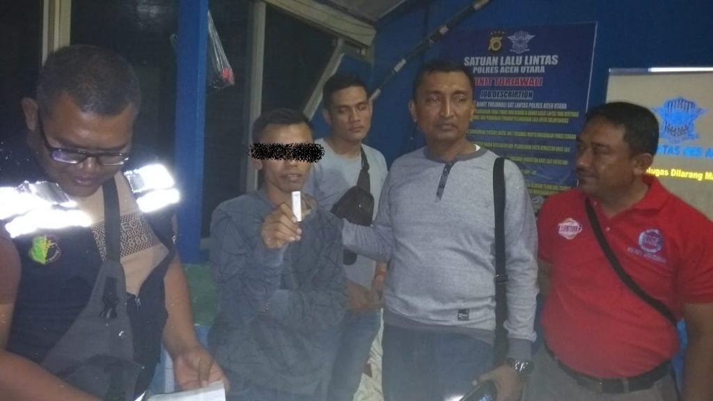 Lantaran kedapatan positif menggunakan narkoba, MF yang mengemudikan Honda HRV ini bersama istri dan anaknya tidak diizinkan melanjutkan perjalaman dan diboyong ke Polres Aceh Utara untuk pemeriksaan lebih lanjut.