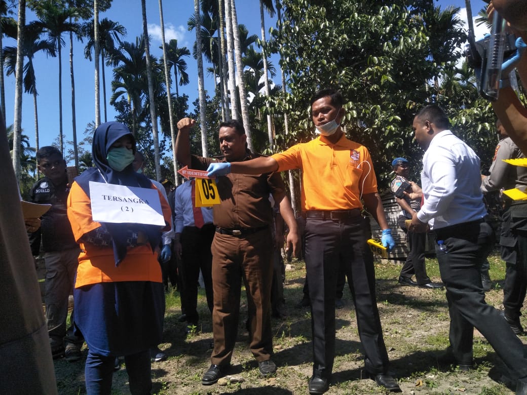 Ratusan warga menyaksikan proses rekontruksi itu. “Adegan yang diperagakan itu rangkaian dari keterangan kedua tersangka saat pemeriksaan. Sehingga rekontruksi ini bisa menggambarkan bagaimana peristiwa kriminal itu terjadi,” sebut AKBP Ian.