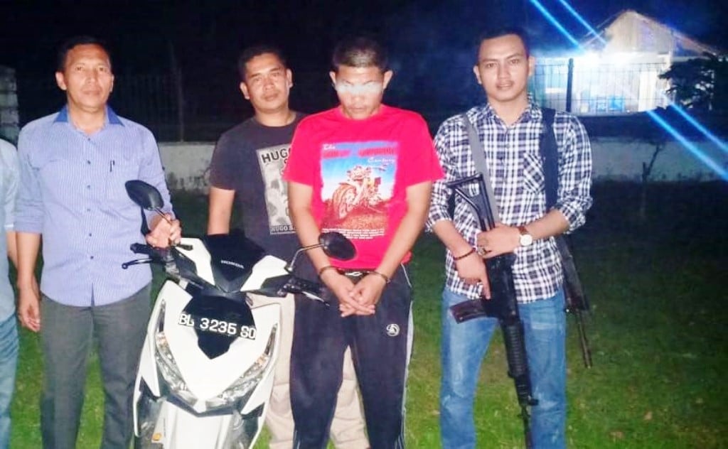 “Awalnya kita tangkap pelaku di kawasan Kecamatan Langkahan, Aceh Utara. Kita introgasi dimana disimpan sepeda motor Vario dengan nomor polisi BL 3235 SD, yang telah diambil itu, dia menyebut Kecamatan Sawang, Aceh Utara, disimpan di rumah temannya berinisial Y. Maka kita datangi Kecamatan Sawang,” sebutnya.