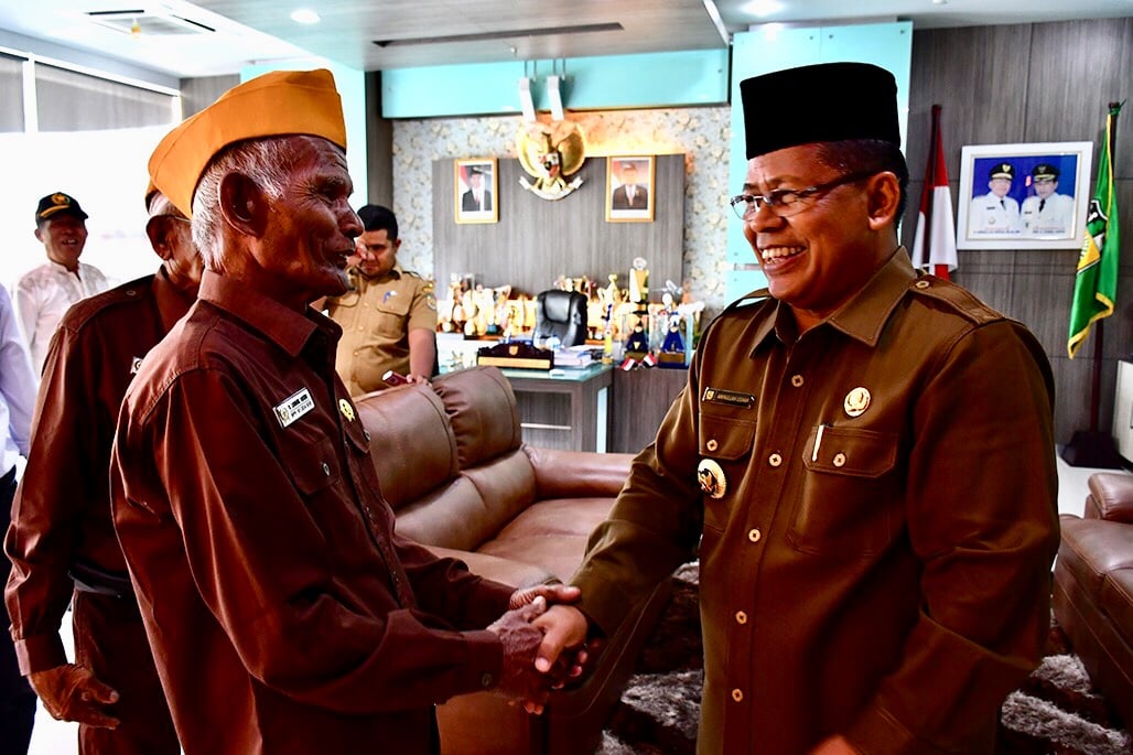 SENIN (8/4/2019) Wali Kota Banda Aceh, Aminullah Usman menerima tamu istimewa di ruang kerjanya. Tamu yang datang adah mantan pejuang yang pernah merasakan getirnya perjuangan saat masa penjajahan Jepang dan Belanda.