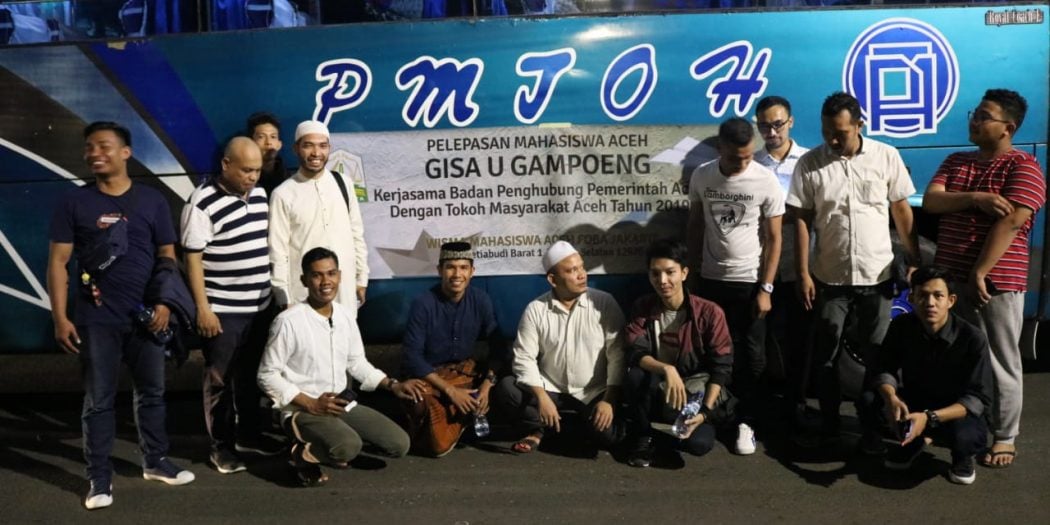 JAKARTA | Puluhan Mahasiswa asal Aceh mendapatkan fasilitas mudik gratis dalam program Gisa U Gampong dari Pemerintah Aceh melalui Badan Penghubung Pemerintah Aceh (BPPA) bekerjasama dengan tokoh masyarakat Aceh tahun 2019. Pelepasan mudik secara simbolis tersebut diselenggarakan di Wisma Foba, Jl. Setia Budi Barat, Jakarta, Minggu, 26 Mei 2019.