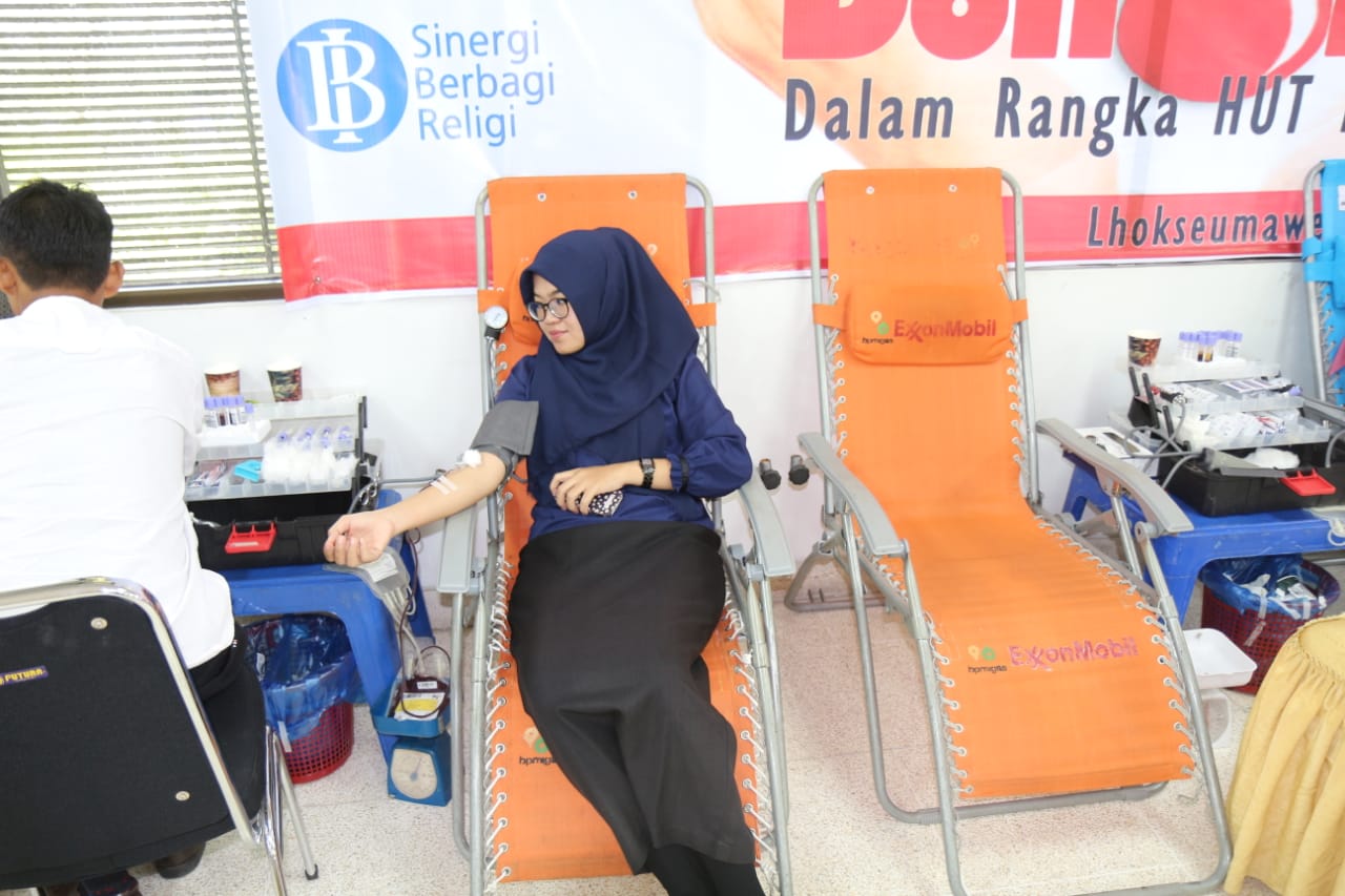 LHOKSEUMAWE |Bank Indonesia (BI) Lhokseumawe bekerja sama dengan Palang Merah Indonesia (PMI) Aceh Utara, menggelar donor darah dalam rangka memperingati HUT ke-66 BI, di Kantor BI setempat, Senin, (1/7/ 2019).