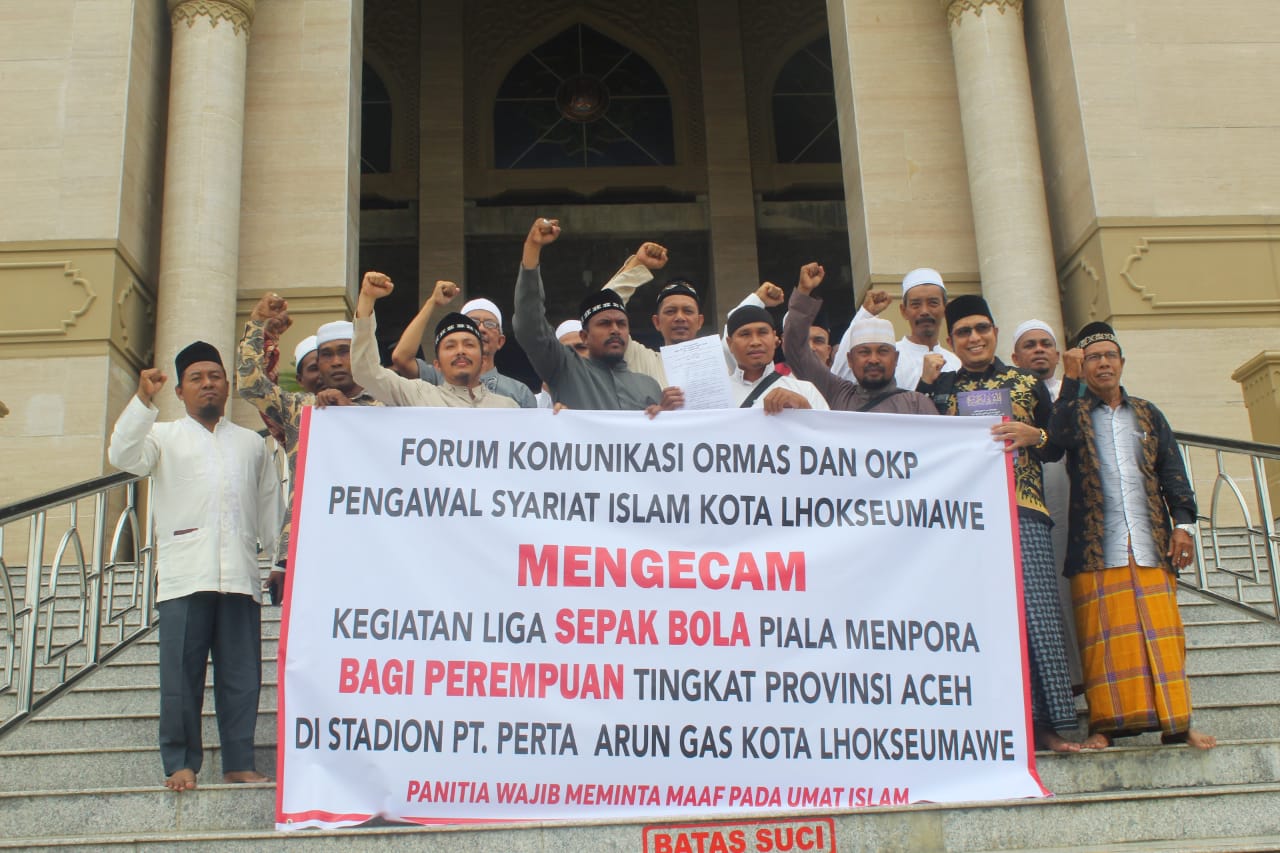 Seperti dilakukan Forum Komunikasi Ormas dan OKP Pengawal Syariat Islam Kota Lhokseumawe menolak tegas serta mengecam Piala Menpora sepakbola putri.