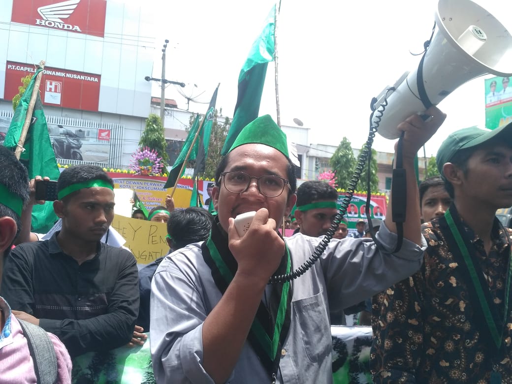 Muhammad Fadil, dalam orasinya meminta dewan terpilih untuk melihat kondisi masyarakat Aceh Utara. Mereka juga mendesak anggota Dewan yang sudah dilantik untuk turun langsung kelapangan melihat kondisi masyarakat.