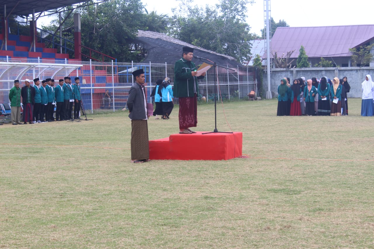 ACEH UTARA | Upacara peringati Hari Santri Nasional (HSN) tingkat Kota Lhokseumawe dan Aceh Utara digelar di Stadion Krueng Mane, Kecamatan Muara Batu, Aceh Utara, Selasa (22/10/2019) siang. Ketua pembina upacara Ketua Pengurus Wilayah Nahdlatul Ulama (PWNU) Provinsi Aceh, H. Faisal Ali.