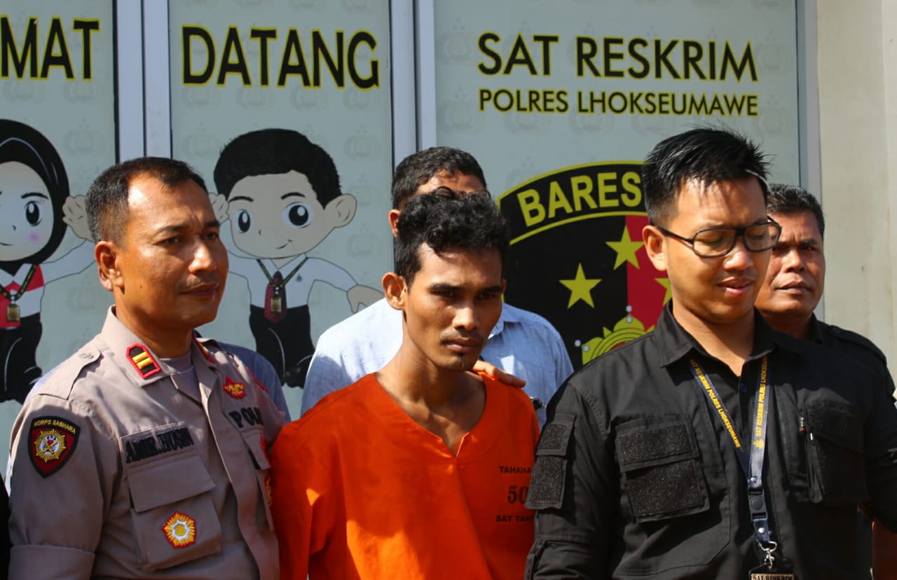 Awalnya, polisi memburu tersangka dalam kasus pencurian. Setidaknya dua kali laporan polisi terkait tersangka yaitu pada 13 November 2019 tersangka mencuri lima handphone dan uang tunai Rp 10 juta di Desa Seneubok Punti, Kecamatan Simpang Keuramat, Aceh Utara.