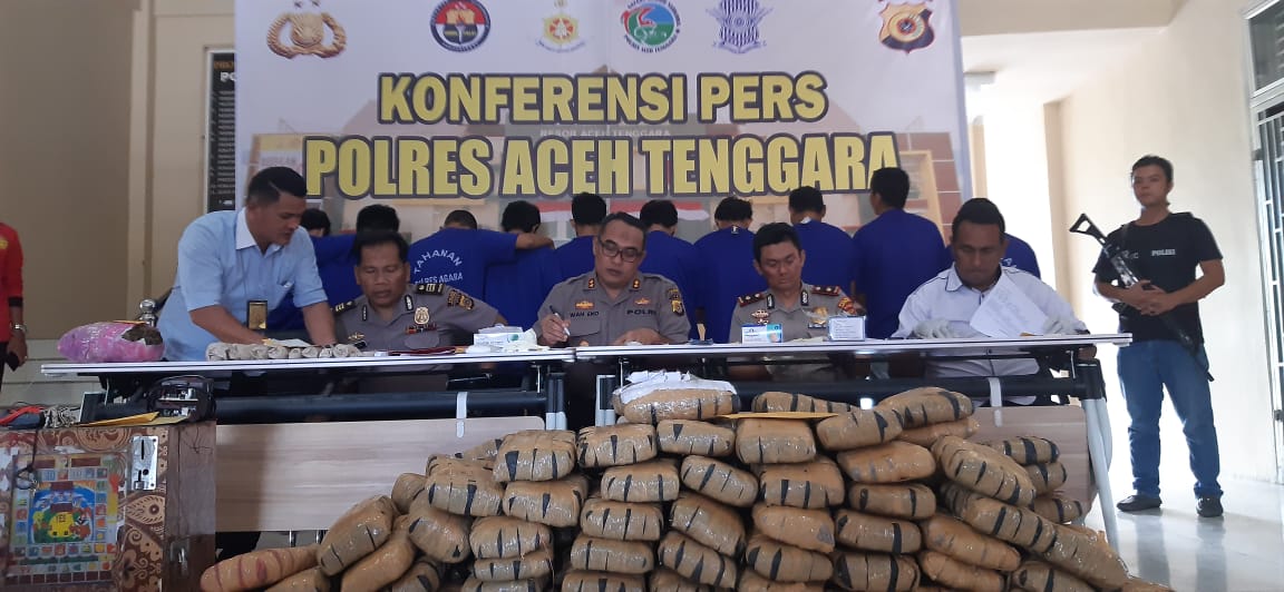 Kapolres Aceh Tenggara AKBP Wan Eko dalam keterangan resminya menyebutkan, barang bukti yang disita yaitu 157 kilogram ganja kering yang dibungkus dalam 148 paket plastik dan dimasukan ke dalam enam karung.