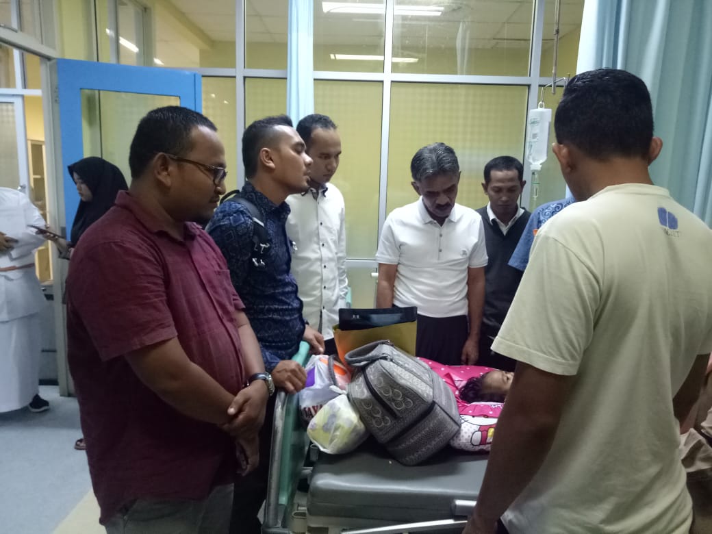 BANDA ACEH | Bupati Aceh Utara H. Muhammad Thaib disapa Cek Mad mengunjungi Balgis Kanaya balita penderita paru-paru dan gizi buruk di Rumah Sakit Umum Zainal Abidin (RSUZA) Banda Aceh, Rabu (4/12/2019). Kunjungannya didampingi Ketua Ikatan Pemuda Aceh Utara (IPAU), Saifullah serta pengurus.