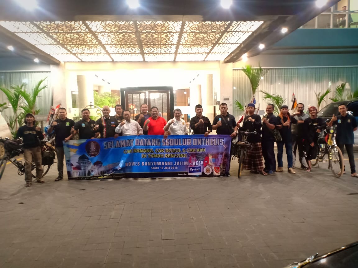 General Manager Kyriad Muraya Hotel Aceh, Bambang Pramusinto juga mengucapkan selamat datang kepada ontelis disabilitas dari Banyuwangi yang sudah sampai ke Banda Aceh dengan selamat, dan semoga sambutan dari Kyriad Muraya Hotel Aceh sangat berkesan untuk para ontelis dan Paguyuban Jawa Timur. Setelah penyambutan di lobby hotel dilangsungkan dengan ngopi bareng di Daud Terrace Cafe.