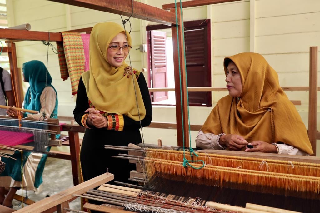 Aceh Besar- Pelaksana Tugas (Plt) Ketua Dewan Kerajinan Nasional Daerah (Dekranasda) Aceh, Dyah Erti Idawati, mengapresiasi program pengembangan ekonomi kerajinan tenun yang dilakukan oleh Perwakilan Bank Indonesia (BI) Provinsi Aceh.