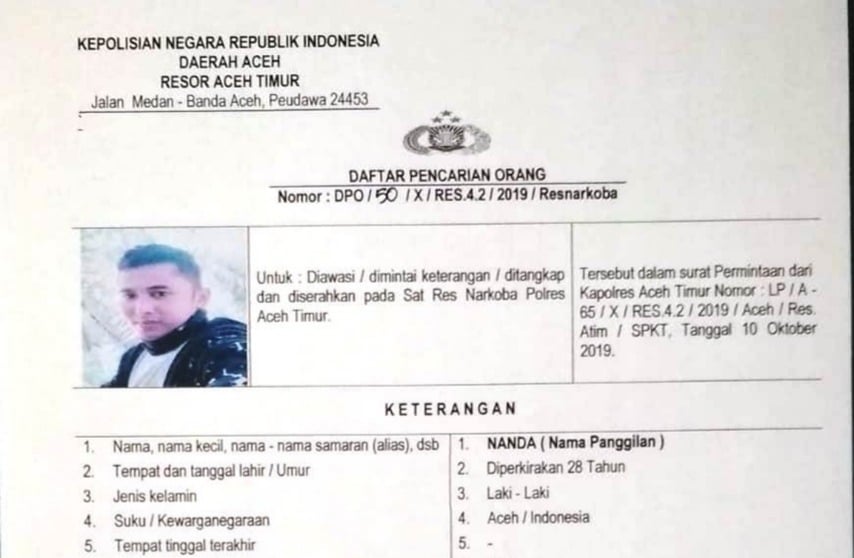 “Dia terdaftar sebagai DPO di tiga kasus. Satu kasus pencurian di Polsek Idi Tunong. Satu kasus narkoba, dan satu lagi di pidana umum Polres Aceh Timur,” pungkas Kapolres.