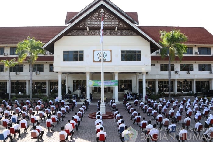 Hal ini dilakukan untuk menjaga jarak sosial (social distancing) sesuai anjuran pemerintah untuk mengantisipasi penyebaran wabah virus corona Covid-19. Sebelumnya, pelantikan biasanya berlangsung di aula Kantor Bupati di Lantai III, namun kali ini digelar di halaman kantor di bawah cerah matahari pagi. Begitupun, prosesi pelantikan dan pengukuhan tetap berlangsung khidmat, lancar dan sukses, dilakukan oleh Wakil Bupati Aceh Utara Fauzi Yusuf.
