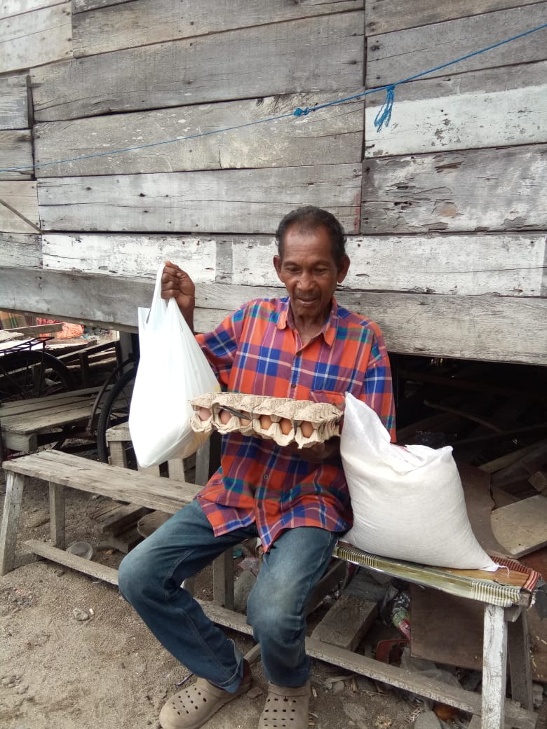 Kek Yusni menjadi salah satu orang yang beruntung karena menjadi salah satu penerima dari ratusan penerima paket Sembako bagi masyarakat kurang mampu selama periode Covid19 dan Ramadhan.