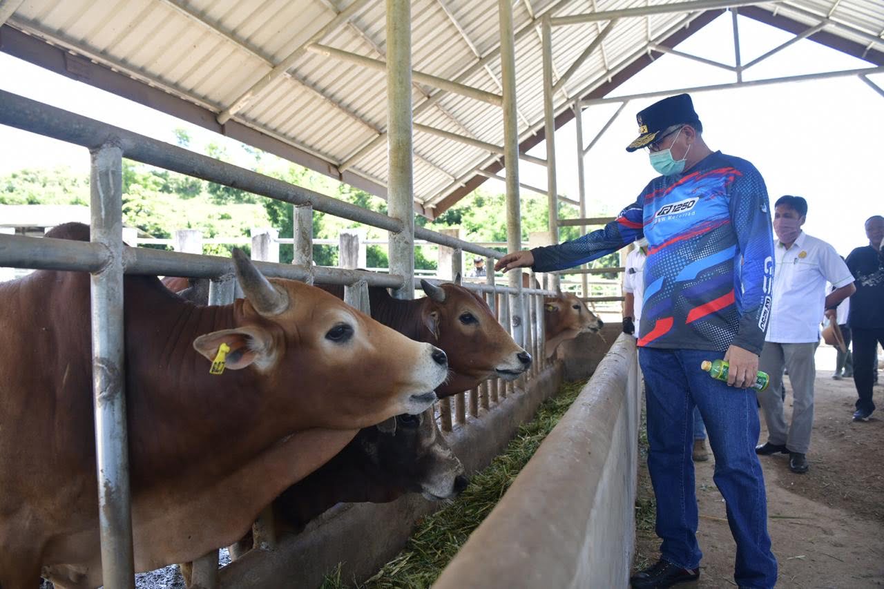 Aceh Besar- Pelaksana Tugas Gubernur Aceh Nova Iriansyah, bersama Wakil Ketua DPRA Dalimi dan Kepala Dinas Peternakan Aceh Rahmandi, meninjau peternakan sapi di Balai Pembibitan Ternak Unggul dan Hijauan Pakan Ternak (BPTU-HPT) Direktorat Jenderal Peternakan dan Kesehatan Hewan Kementerian Pertanian RI, di Indrapuri, Minggu (14/6/2020).