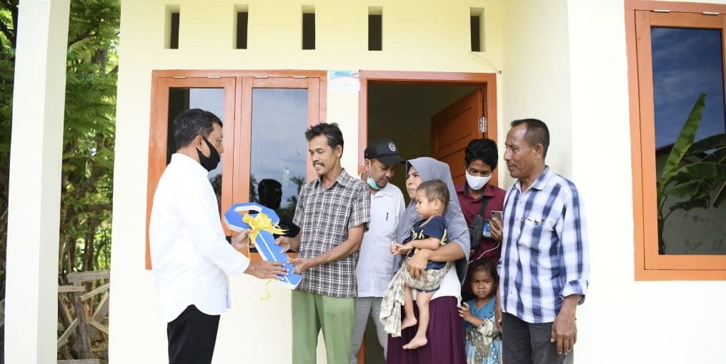 Proses serah terima kunci rumah dilakukan Kepala Dinas Perumahan Rakyat dan Kawasan Permukiman (Perkim) Aceh, T. Mirzuan, kepada lima penerima di Gampong Mureu Bung Ue, Kecamatan Indrapuri dan dua penerima di Gampong Bakoy, Kecamatan Ingin Jaya.