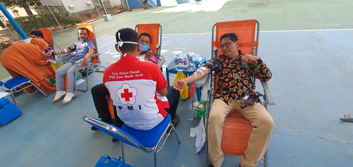 BANDA ACEH | PT PLN (Persero) Unit Induk Wilayah (UIW) Aceh bekerja sama dengan Palang Merah Indonesia (PMI) Kota Banda Aceh menggelar kegiatan bakti sosial donor darah di lapangan olah raga PT PLN (Persero) Unit Induk Wilayah (UIW) Aceh Banda Aceh, Jumat (18/6/2020).