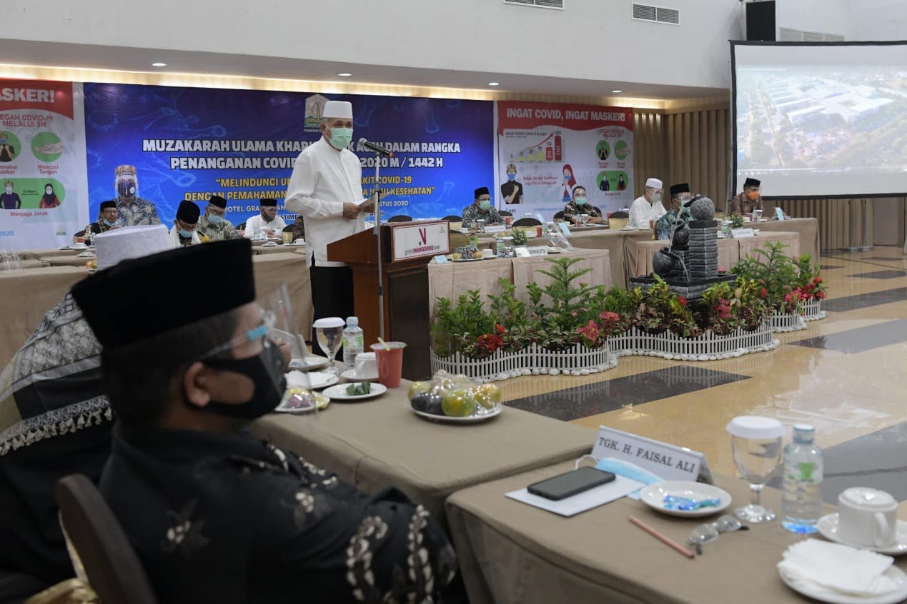 “Saya yakin, ulama kita di Aceh sudah paham betul apa yang harus dilakukan, ” kata Nova saat membuka Muzakarah Ulama Kharismatik Aceh dalam rangka penanganan Covid-19, di Hotel Grand Nanggroe, Rabu, (26/8/2020).