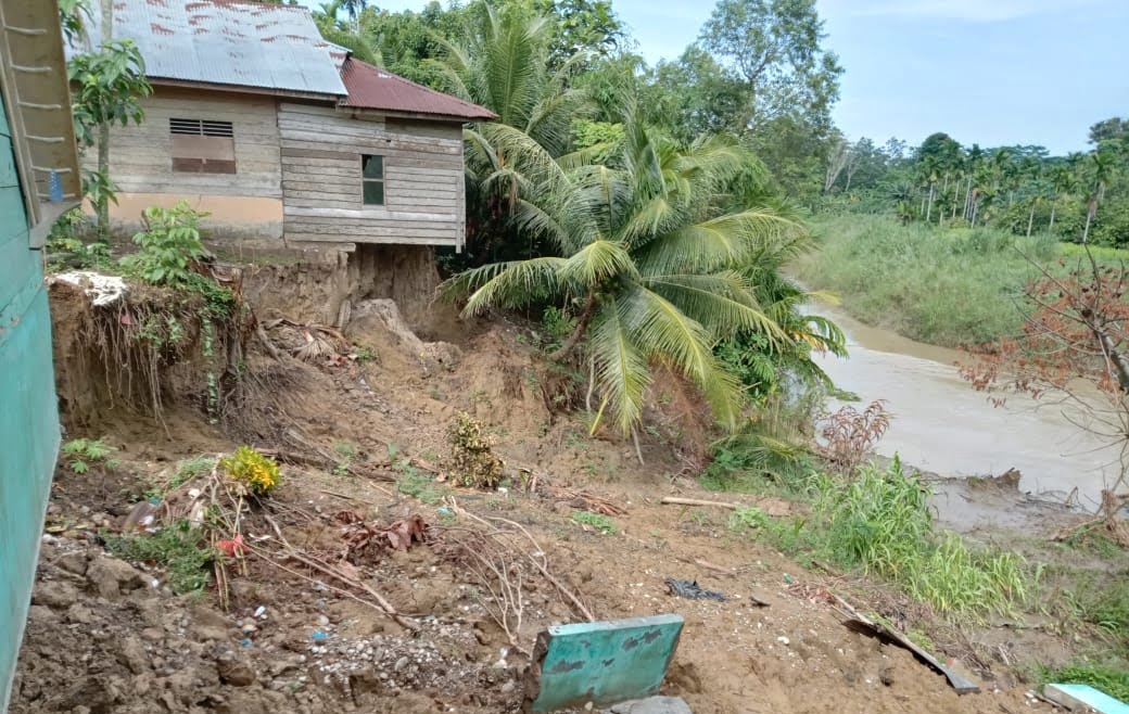 “Mereka adalah Wardiah (60), Ismail (75), Hafasah (50) dan satu lagi bukan rumah namun tempat usahanya atau kedai kelontong milik Umar (38). Jangankan rumah, jarak sungai dengan jalan utama di desa kami jaraknya tersisa 10 meter lagi,” sebut Samsul.