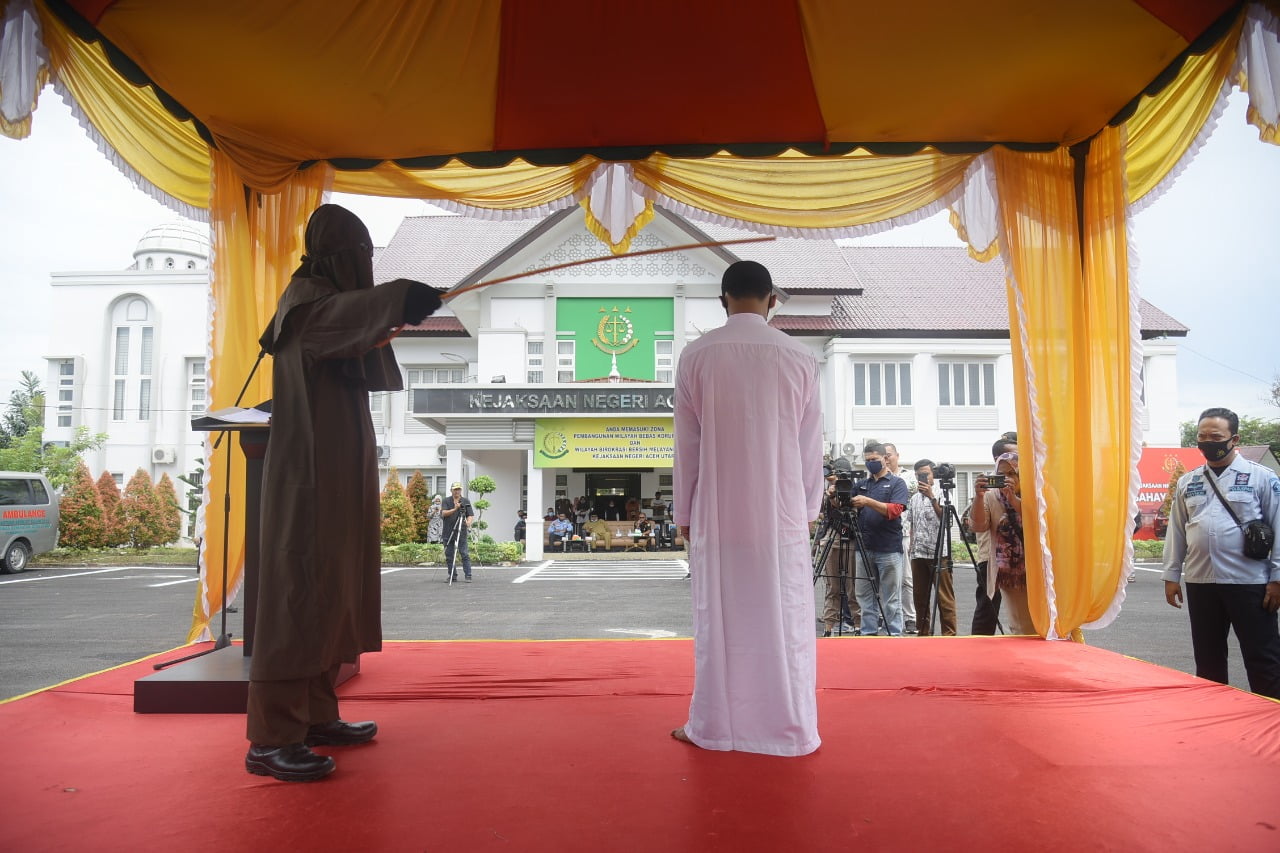 ACEH UTARA – Kejaksaan Negeri (Kejari) Aceh Utara mengeksekusi cambuk empat pemuda di Aceh Utara, Selasa (15/9/2020).