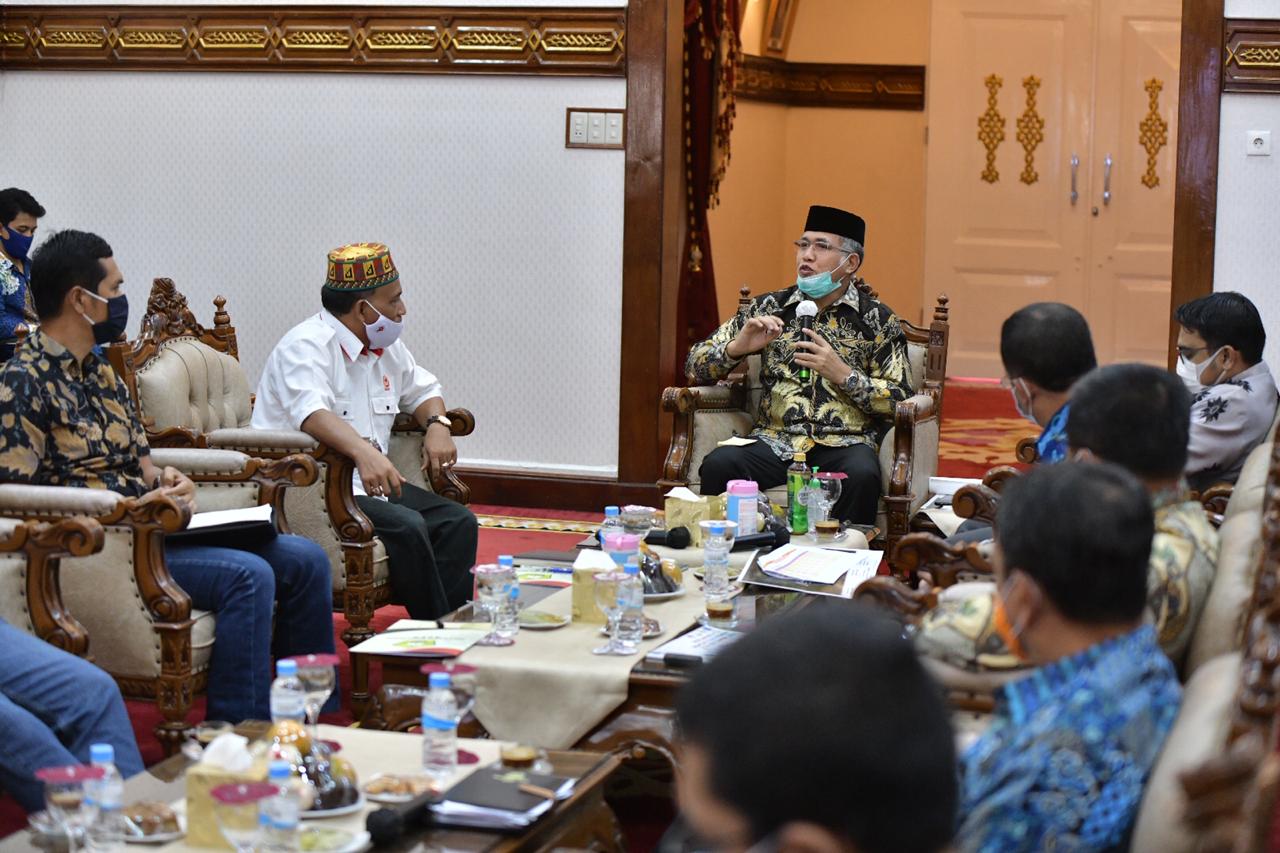 Banda Aceh – Pelaksana Tugas Gubernur Aceh, Nova Iriansyah memimpin rapat kesiapan gelaran Pekan Olahraga Nasional (PON) ke XXI bersama pimpinan KONI Aceh, di Pendopo Gubernur, Kamis 15/10.