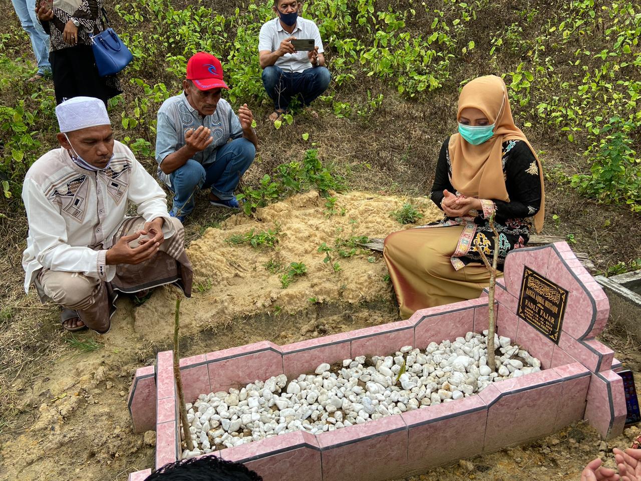 Idi – Wakil Ketua PKK Aceh Dyah Erti Idawati menziarahi makam almarhum Rangga Aqshal Mustaqim di Kecamatan Birem Bayeun, Aceh Timur, Kamis (22/10).