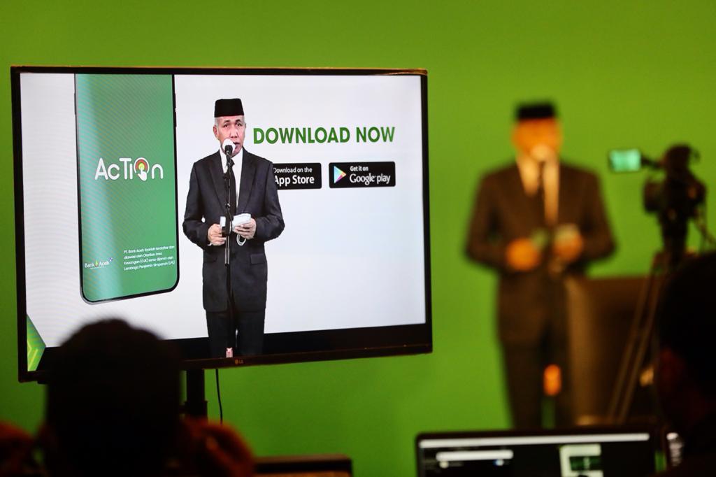 Banda Aceh- Gubernur Aceh, Nova Iriansyah, meluncurkan secara resmi aplikasi mobile banking Bank Aceh Syariah yang diberi nama Action (Aceh Transaksi Online), di Hermes Palace Hotel, Banda Aceh, Selasa, (10/11/2020).