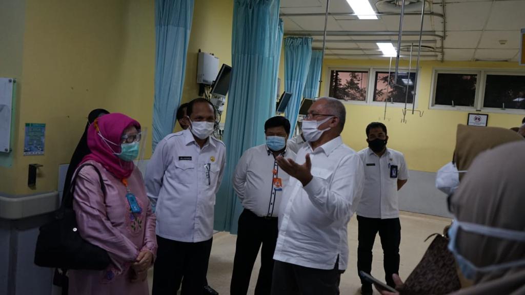 Banda Aceh – Sekretaris Daerah Aceh Taqwallah, didampingi Asisten Pemerintahan dan Keistimewaan Sekda Aceh M Jafar, meninjau pelayanan di Rumah Sakit Umum Daerah dr Zainoel Abidin, Rabu (11/11/2020) sore.