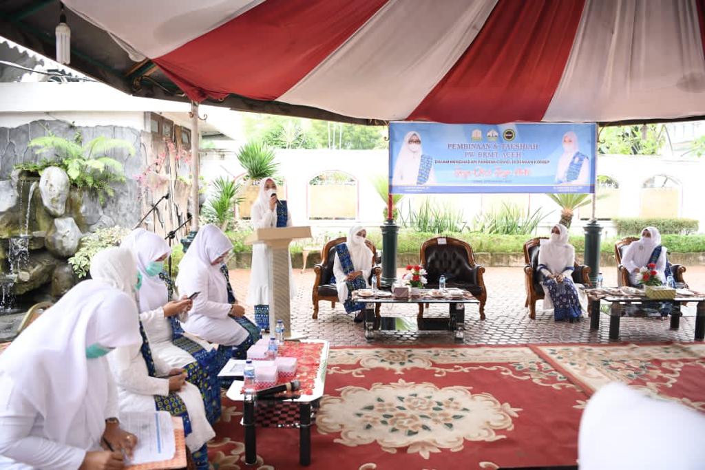 Penegasan tersebut disampaikan oleh Ketua Pimpinan Wilayah BKMT Aceh Dyah Erti Idawati, dalam sambutannya pada acara Pembinaan dan Tausyiah PW BKMT Aceh, yang mengangkat tema ‘Penguatan BKMT dalam Menghadapi Pandemi Covid-19 dengan Konsep Jaga Diri Jaga Hati’ Meuligoe Bupati Bireuen, Sabtu (28/11/2020).