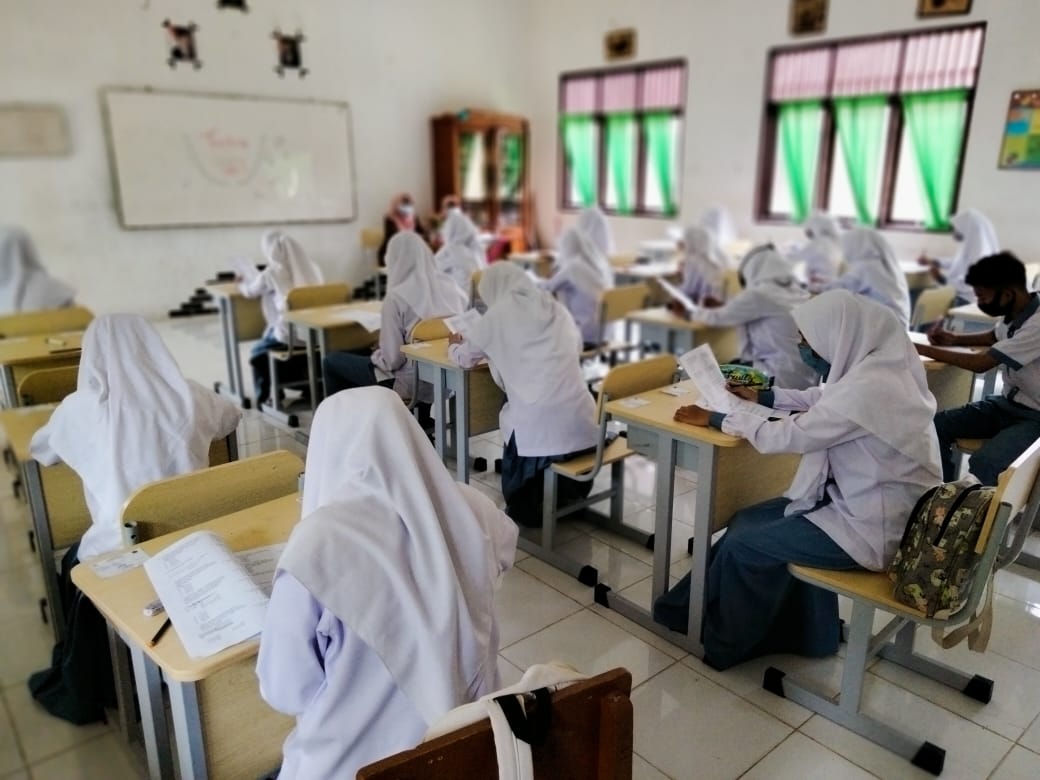 Mustafa menyebutkan pihaknya sudah menerapkan kembali belajar tatap muka sejak Agustus 2020 kemarin. Namun, ada tiga siswa yang tidak diberi izin oleh orang tua untuk kembali belajar tatap muka. mungkin dikarenakan orang tua siswa masih takut dengan wabah ini.