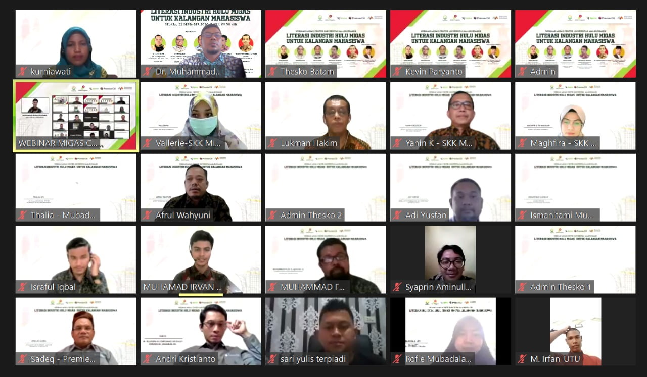 BANDA ACEH | Satuan Kerja Khusus Pelaksana Kegiatan Usaha Hulu Minyak dan Gas Bumi (SKK Migas) dan Kontraktor Kontrak Kerja Sama Wilayah Andaman Aceh (KKKS Andaman) dan Migas Center Universitas Malikussaleh melaksanakan Webinar dengan tema “Literasi Industri Hulu Migas untuk Kalangan Mahasiswa”. Kegiatan ini digelar Selasa, (22/12/2020) melalui daring/virtual. Kegiatan ini juga didukung oleh BPMA (Badan Pengelola Migas Aceh).