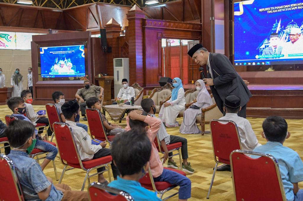 Orang nomor satu di Aceh itu, mengajak anak-anak yatim tersebut untuk mempelajari dan memahami pengetahuan seputar bencana tsunami. Hal tersebut dianggap penting untuk lebih siaga dalam melakukan mitigasi menghadapi bencana di masa depan.