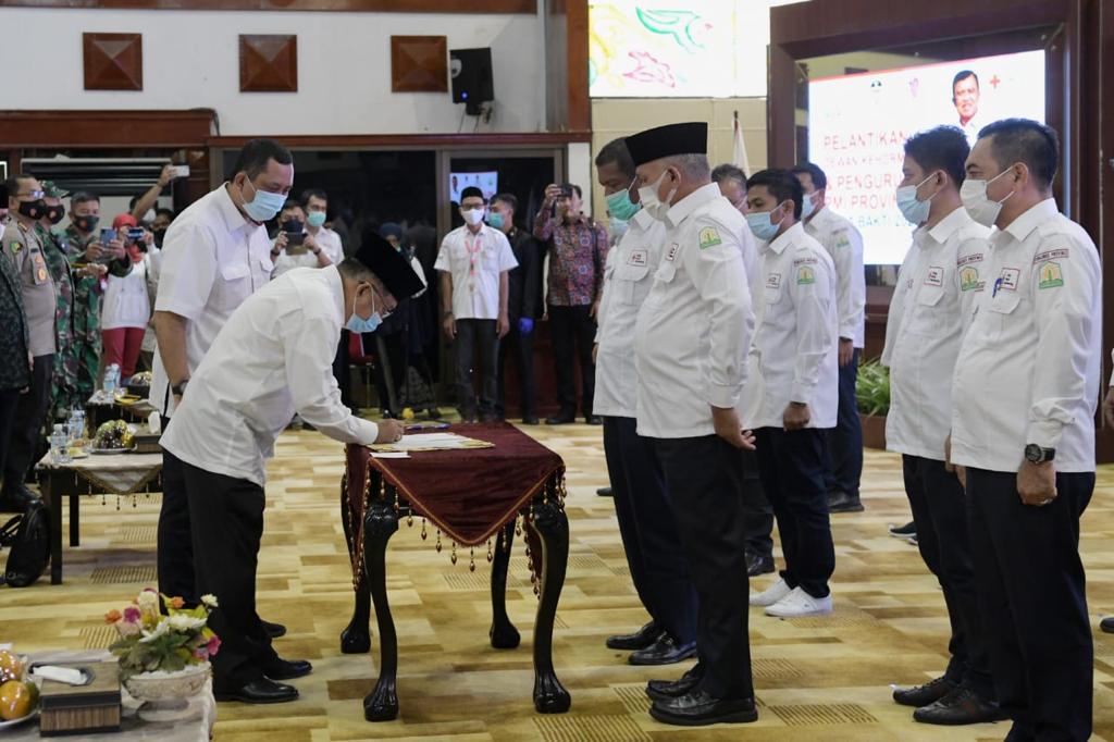 Pengurus PMI yang dilantik hari ini merupakan hasil dari musyawarah luar biasa (muslub) 28 Oktober 2020 di mana ketua yang terpilih adalah Murdani Yusuf.