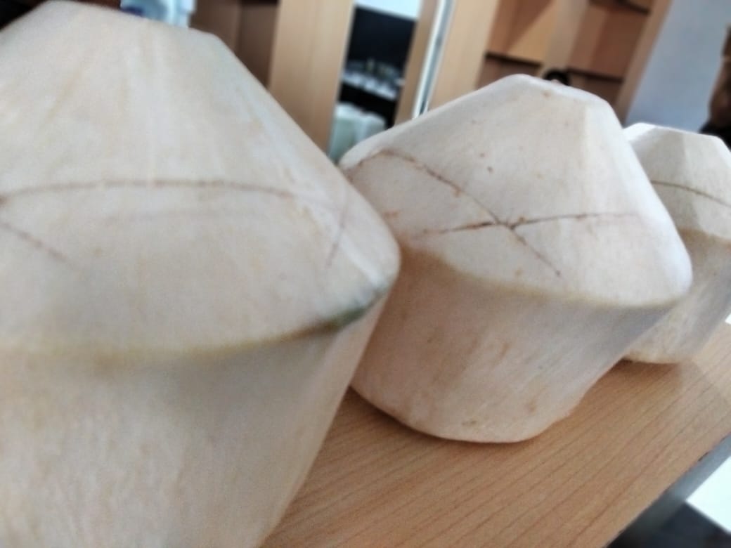 “Setelah daging diserut, air kelapa murni, jelly dan coco dimasukan ke dalam batok kelapa lagi, barulah ditutup. Lalu dibungkus kuat pakai plastik dan dimasukan ke mesin pendingin,” kata Afdal.