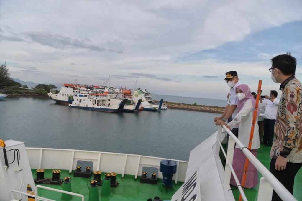 Gubernur Aceh Nova Iriansyah didampingi Istri Dyah Erti Idawati serta Bupati Simeulue Erly Hasyim, Kepala Dinas Perhubungan Aceh Junaidi, Kepala BKA Bustami, Inspektur Aceh Zulkifli, Kepala Biro Humas Setda Aceh Muhammad Iswanto dan Kadishub Kota Banda Aceh Muzakkir Tulot, menjajal berlayar dengan KMP Aceh Hebat 1, di perairan Ulee Lheue