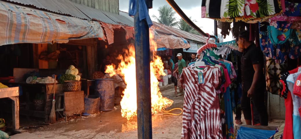 Kondisi tersebut nyaris membuat kebakaran dan membuat heboh pedagang lain dan pengunjung pasar.