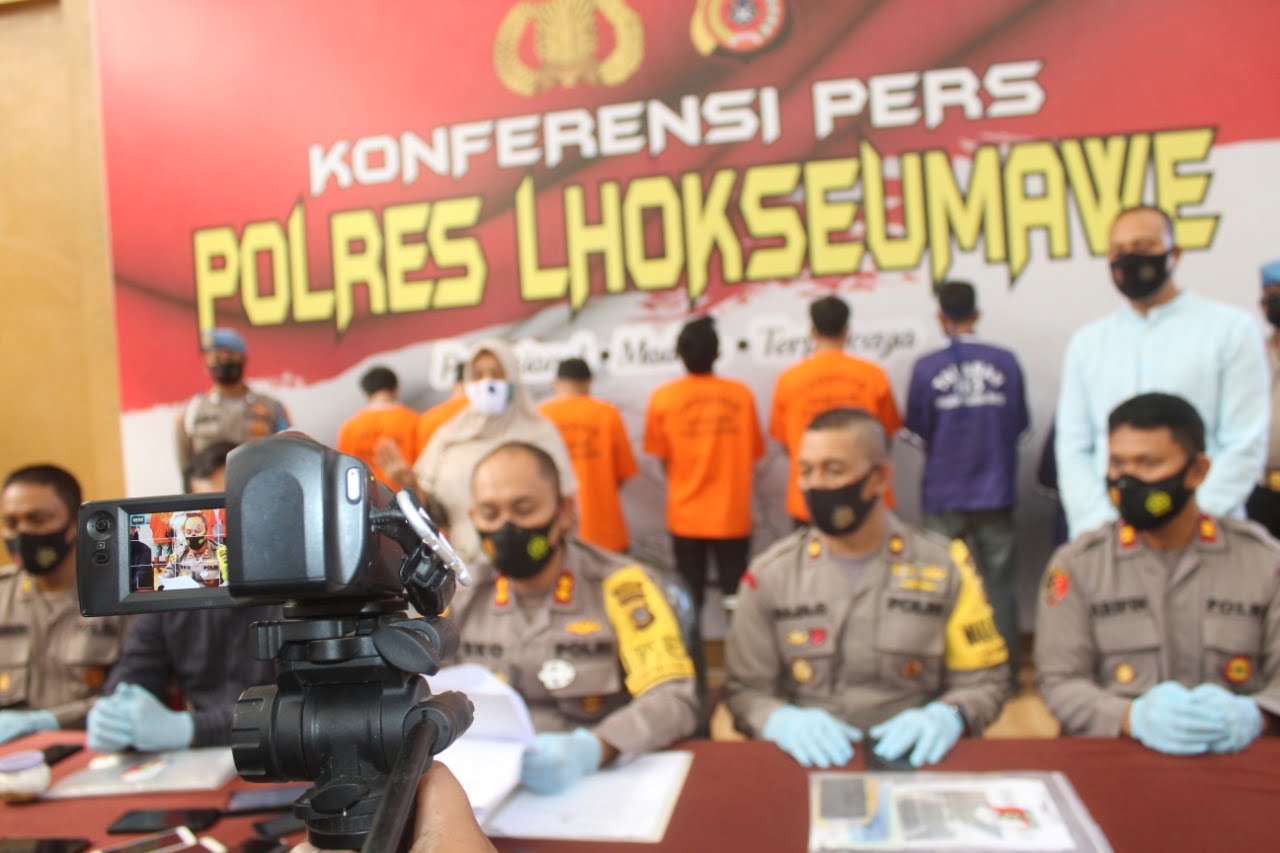 Kapolres Lhokseumawe AKBP Eko Hartanto SIK MH dalam konferensi pers di gedung serbaguna Mapolres Lhokseumawe, Jumat (12/2/2021) mengatakan, penangkapan pelaku berdasarkan Laporan Polisi (LP) Nomor: LP/ 42/II/2021/Aceh/ Res Lsmw, tanggal 08 Februarl 2021 yang dilaporkan oleh korban.