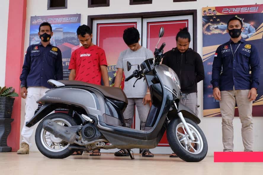 Petugas juga mengamankan barang bukti kejahatan berupa 1 unit sepeda motor Honda Scoopy dan dua unit handphone hasil curian.
