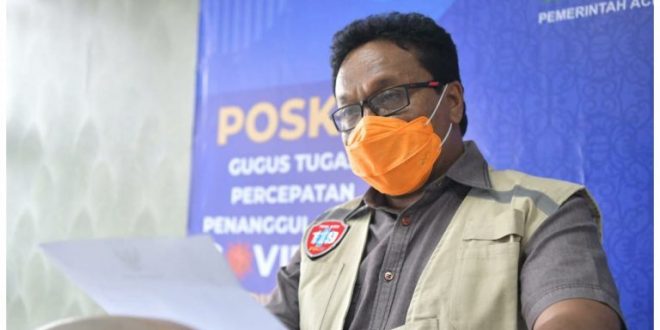 Banda Aceh—Kasus konfirmasi Coronavirus Disease 2019 (Covid-19) terus bertambah di Aceh. Kasus baru dilaporkan 390 orang, pasien yang sembuh bertambah 218 orang, dan 12 orang meninggal dunia. Sementara itu, hasil analisis data per 9 – 15 Agustus 2021 oleh Satgas Penanganan Covid-19 Nasional, Aceh ternyata menjadi zona merah dan oranye.
