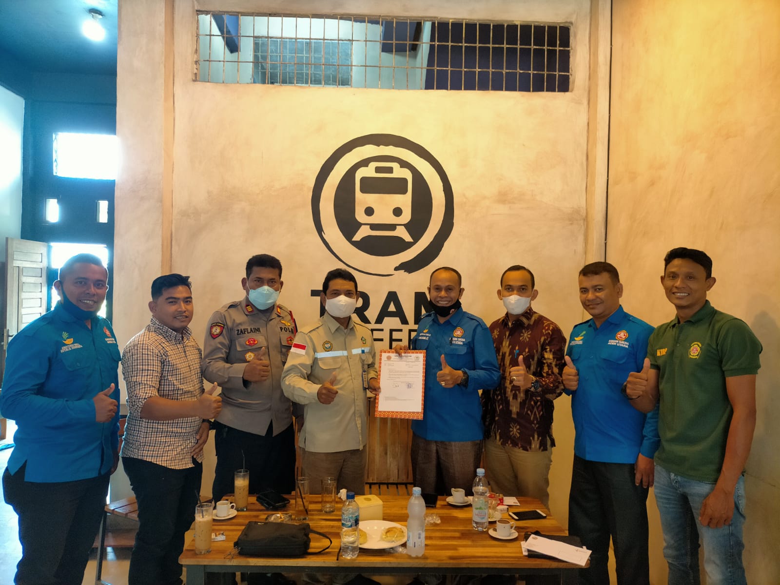 ACEH UTARA | Vice President PKBL & Humas Nasrun didampingi AVP Humas Dedi Ikhsan, Jumat 19 November 2021 menerima penghargaan dari ketua Karang Taruna Kabupaten Aceh Utara Sarjani Nasir yang didampingi Ketua Karang Taruna Rincong Pusaka Paloh Gadeng Ibu Hajar, Ketua Karang Taruna Kecamatan Dewantara Safrizal dan disaksikan oleh Camat Dewantara Nawafil Mahyuda dan Kapolsek Dewantara Zuflaini.