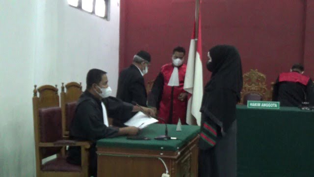 Vonis dibacakan hakim ketua Budi Sunanda dan hakim anggota Sulaiman dan Mustabsyirah di Pengadilan Negeri Lhokseumawe, Senin (29/11/2021). Hadir jaksa penuntut umum Al Muhajir. Vonis hakim lebih ringan dibanding tuntutan jaksa yaitu denda Rp 15 juta untuk masing-masing terdakwa.