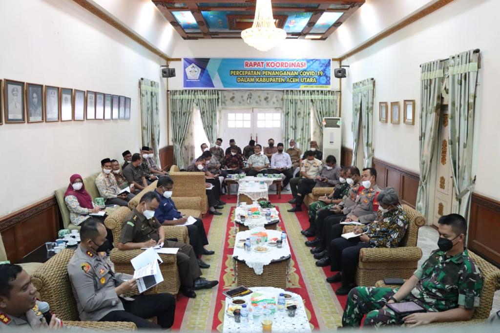 ACEH UTARA | Untuk mengejar target vaksinasi, Forkompinda Aceh Utara akan melakukan berbagai macam upaya. Salah satu caranya akan melakukan mapping wilayah dan menggelar vaksinasi secara door to door setiap rumah warga.