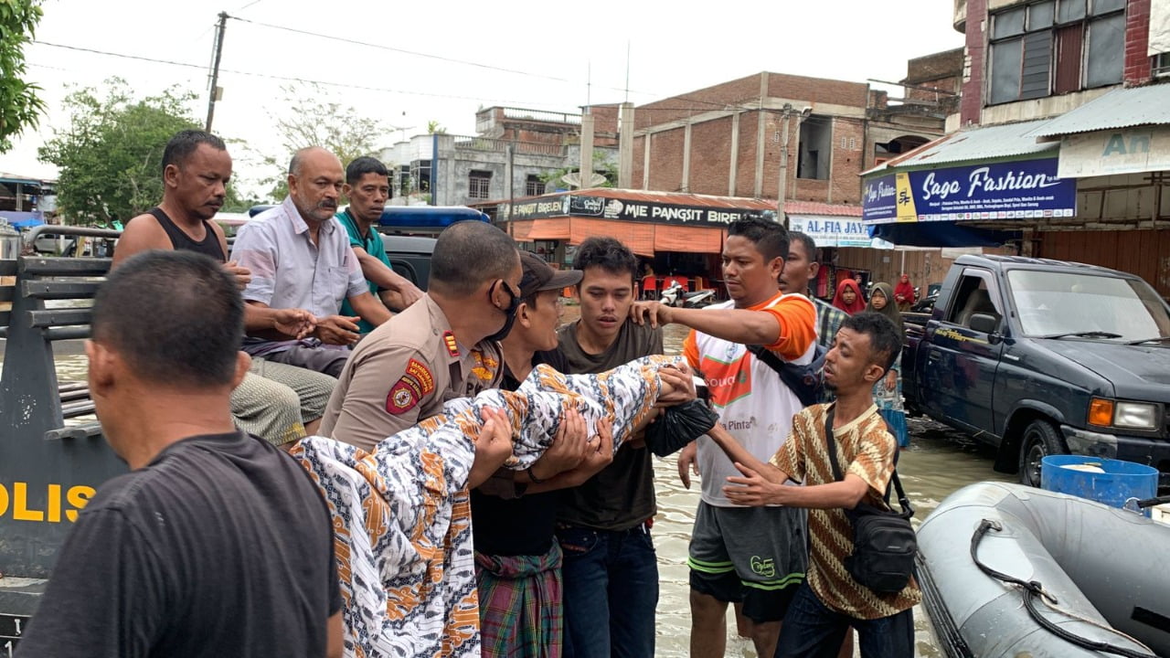 “Saya imbau agar jangan main air banjir. Bisa berbahaya,” kata Kapolsek.