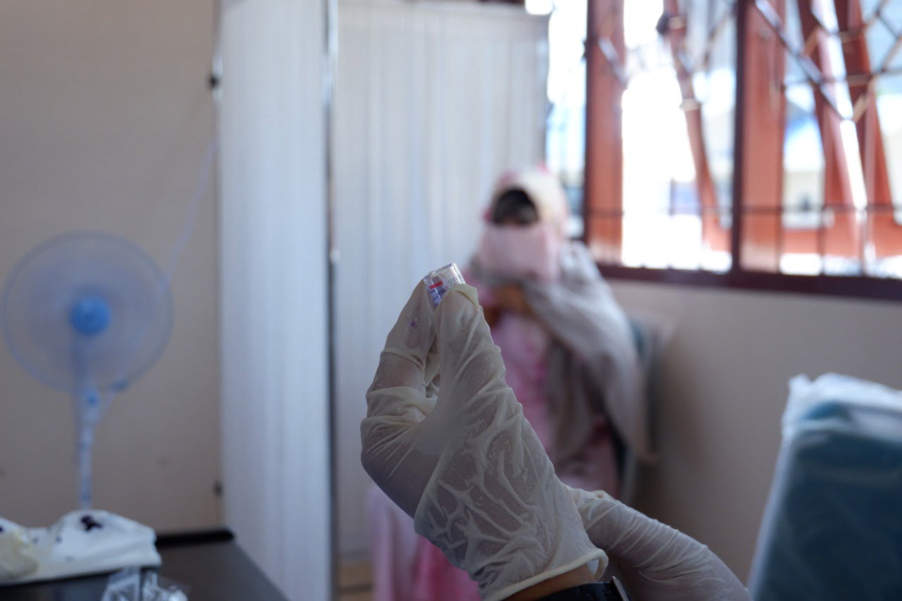 ACEH UTARA | Sebanyak 95 pengungsi Rohingya yang di tampung semetara di kantor balai latihan kerja tepatnya di Desa Meunasah Mee, Kecamatan Muara Dua, Kota Lhokseumawe, di vaksinasi jenis sinovac secara gratis, dilaksanakan oleh international organization for migration (IOM).