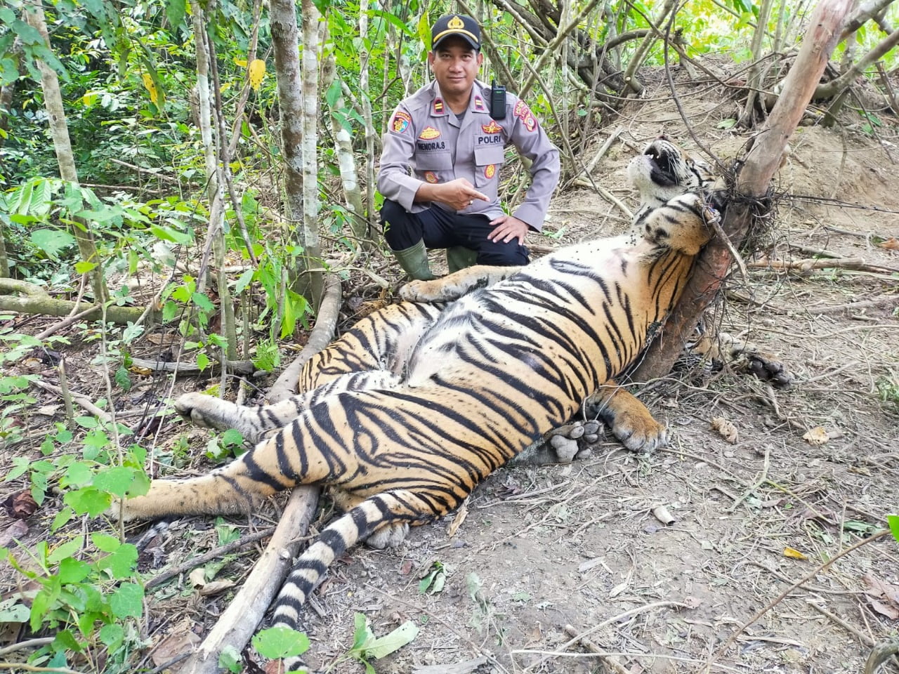 “Dugaan sementara kedua harimau tersebut mati terkena jeratan babi, karena saat ditemukan kondisi kaki kedua harimau tersebut terjerat dengan jenis jerat kawat tebal atau yang biasa disebut sling.” sebut Kapolsek.