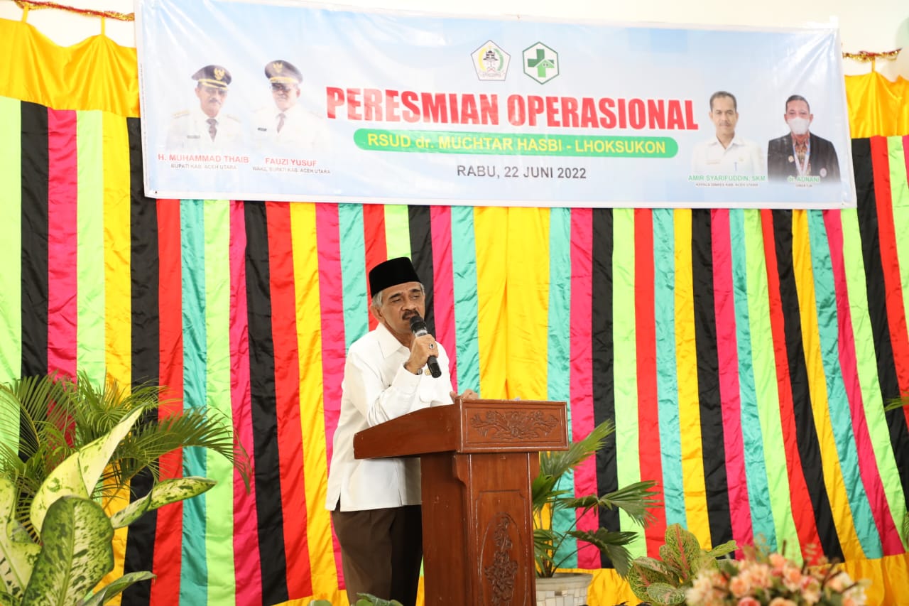 Bupati Aceh Utara H Muhammad Thaib dalam arahannya meminta manajemen Rumah Sakit untuk terus membenahi dan melengkapi prasarana maupun SDM tenaga kesehatan. “Ini adalah pelayanan, maka lakukan pelayanan yang terbaik untuk masyarakat sehingga masyarakat bisa ‘jatuh hati’ terhadap Rumah Sakit ini. Untuk tahap awal, minimal bisa melayani terhadap pasien darurat, misalnya strok atau pasien kecelakaan lalulintas,” minta Cek Mad, sapaan akrab Bupati Aceh Utara.
