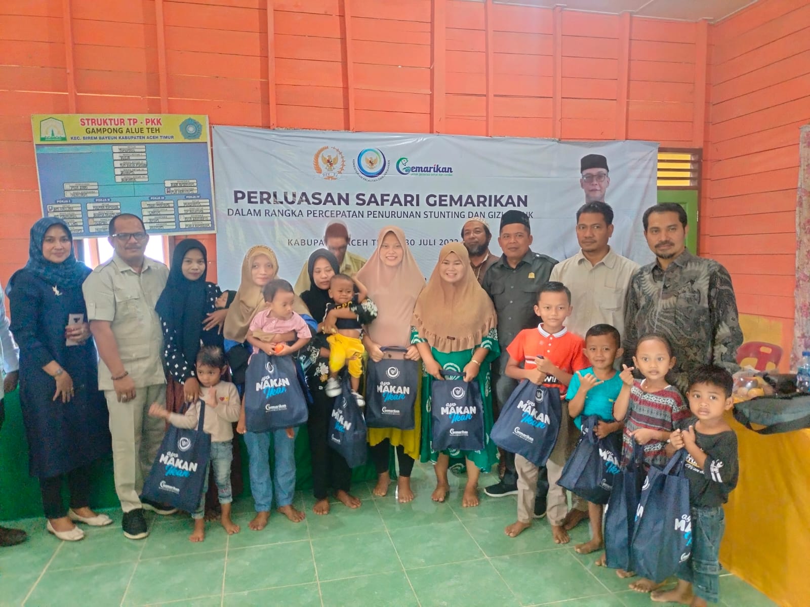 ACEH TIMUR | Dalam Rangka Pencegahan Stunting, Kementerian Kelautan dan Perikanan RI melalui Direktorat Jenderal Perikanan Budidaya mengelar kegiatan Gemar Makan Ikan untuk masyarakat pedalam di Gampong AlueTeh Kecamatan Bireum Bayeun Kabupaten Aceh Timur pada Sabtu, (30/07/2022) di gelar di Balai Pertemuan Desa setempat.
