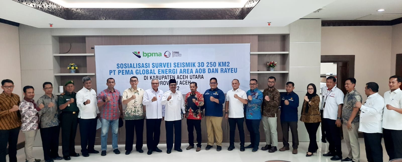 ACEH UTARA– PT. Pema Global Energi (PGE) melakukan sosialiasi kegiatan pencarian sumber migas baru (seismik 3D) di Kabupaten Aceh Utara dan Kabupaten Aceh Timur, Provinsi Aceh.