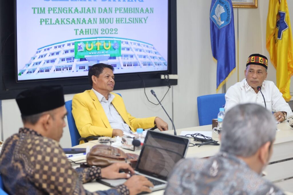 Meulaboh – Menyikapi wacana revisi Undang-Undang Pemerintah Aceh (UUPA) Nomor 11 Tahun 2006, Tim Pengkaji dan Pembina Pelaksanaan MoU Helsinki yang dibentuk oleh Wali Nanggroe Aceh, Paduka Yang Mulia Tgk. Malik Al Haythar, melakukan pertemuan, yang berlangsung di Ruang Rapat Utama Rektorat Universitas Teuku Umar (UTU) Meulaboh, Aceh Barat, Kamis 13 Oktober 2022.