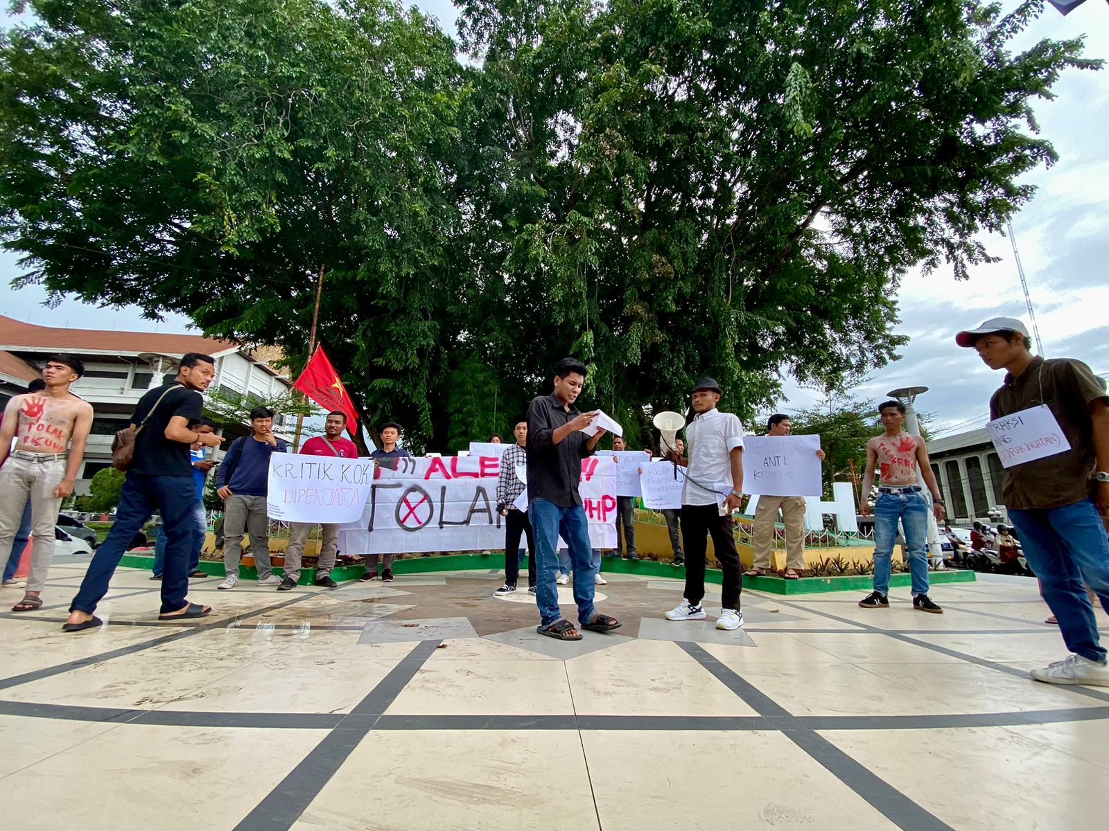 Dari LMND Lhokseumawe, orasi disampaikan Ahmad Satria. Ia menilai RKUHP yang ingin disahkan oleh pemerintah dan DPR berpotensi menghalangi kemerdekaan pers, kebebasan berpendapat dan berekspresi.