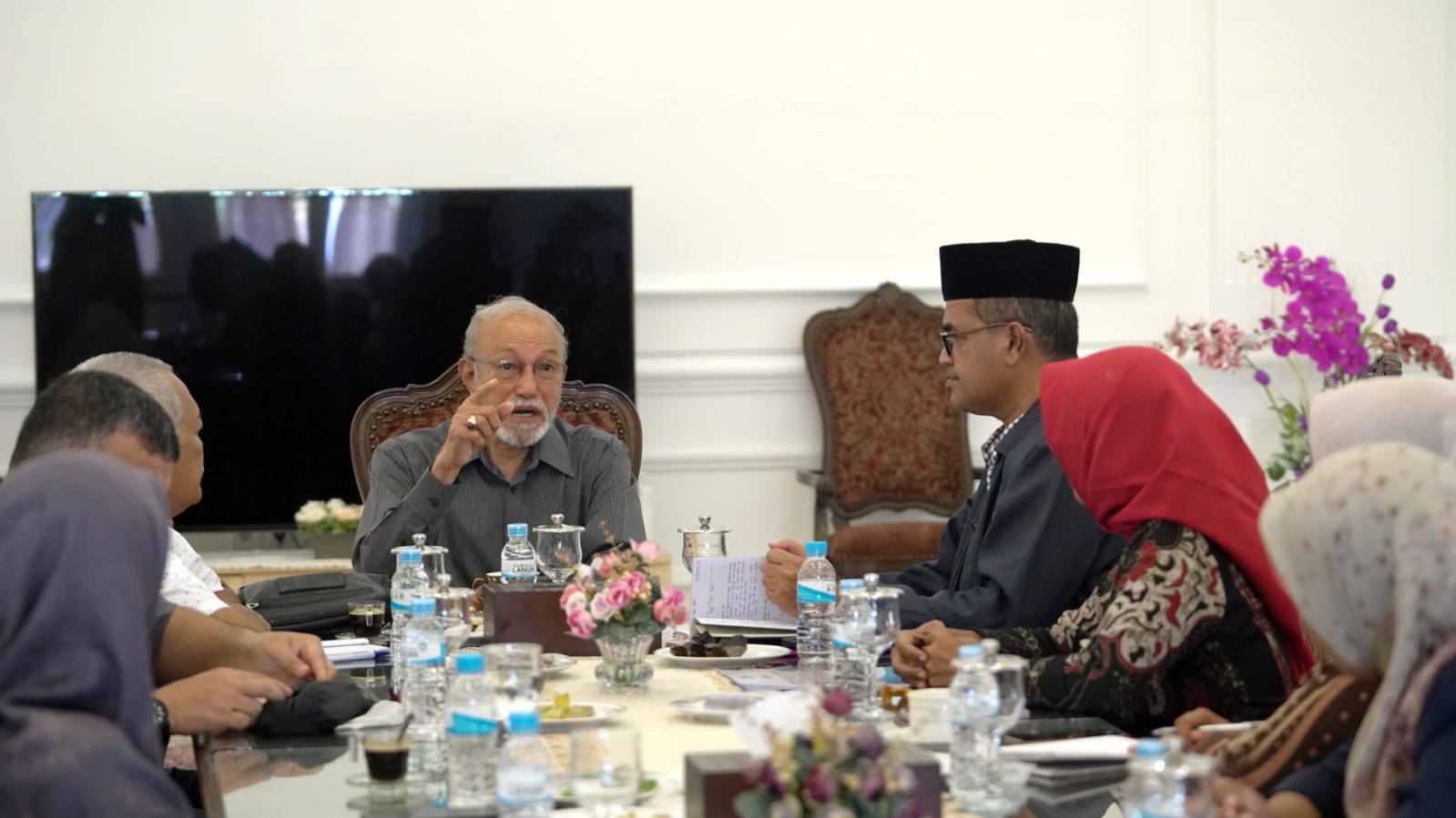 Sementara Wali Nanggroe, didampingi Staf Khusus Teuku Kamaruzzaman dan DR. M. Raviq.